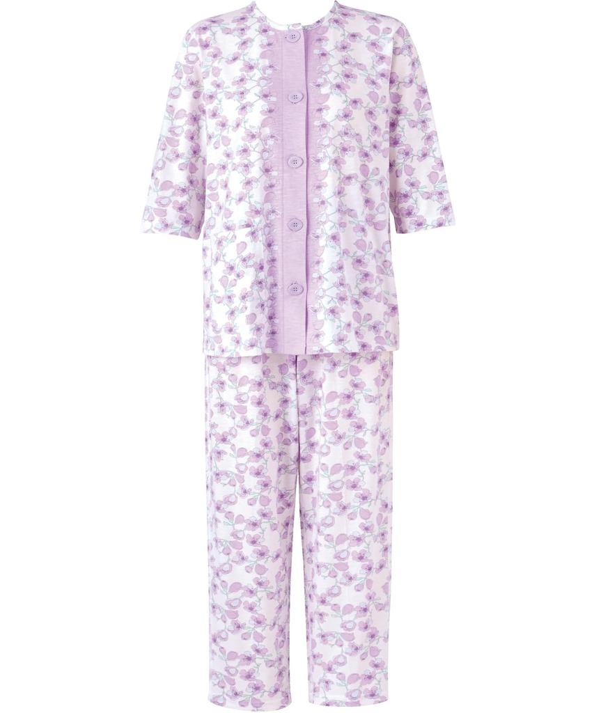 Wacoal Long Cotton Cool DNL311 PU LP [Easy Partner] Pajamas, 3/4 Sleeves, Pants, 100% (Main Body), Texture, Senior,