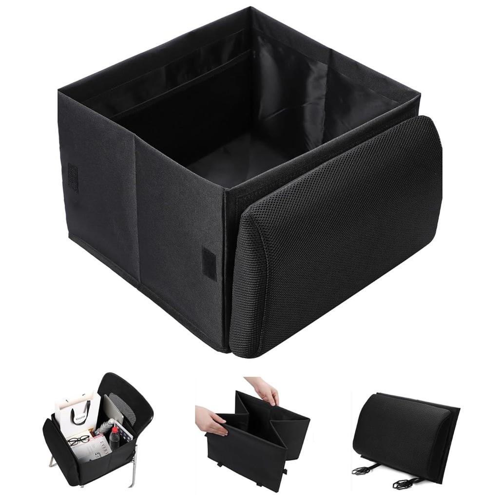 [Foldable for space-saving storage] The foldable design allows you to fold it up and use it as a cushion when not carrying luggage. This reduces strain on your lower back while driving. When opened, it becomes a storage box, preventing luggage from falling over. The box also has a mesh pocket, making it easy to separate and store small items.
