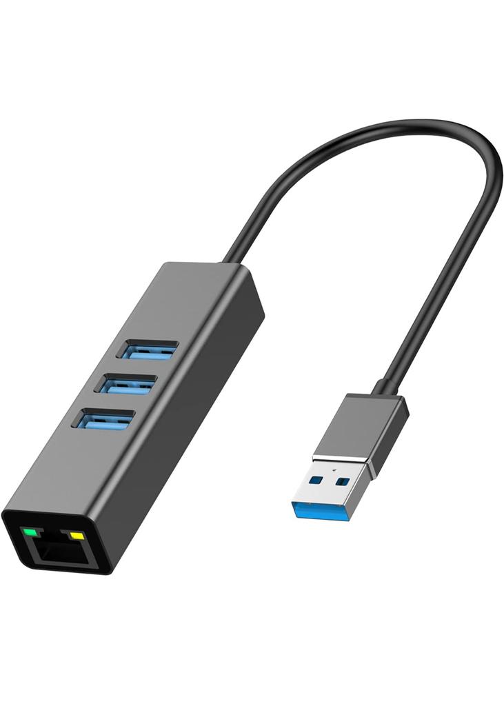 Product Specifications: Connectors: 3 USB 3.0 ports and 1 RJ45 LAN port. Input: USB Type-C male port. Output: 3 USB 3.0 ports, Type-A female, and RJ45 LAN port. Ethernet Standard: 10/100/1000Mbps. Material: Aluminum alloy. Dimensions (including cable): 262*24*17mm. Cable Length: 17.5cm.