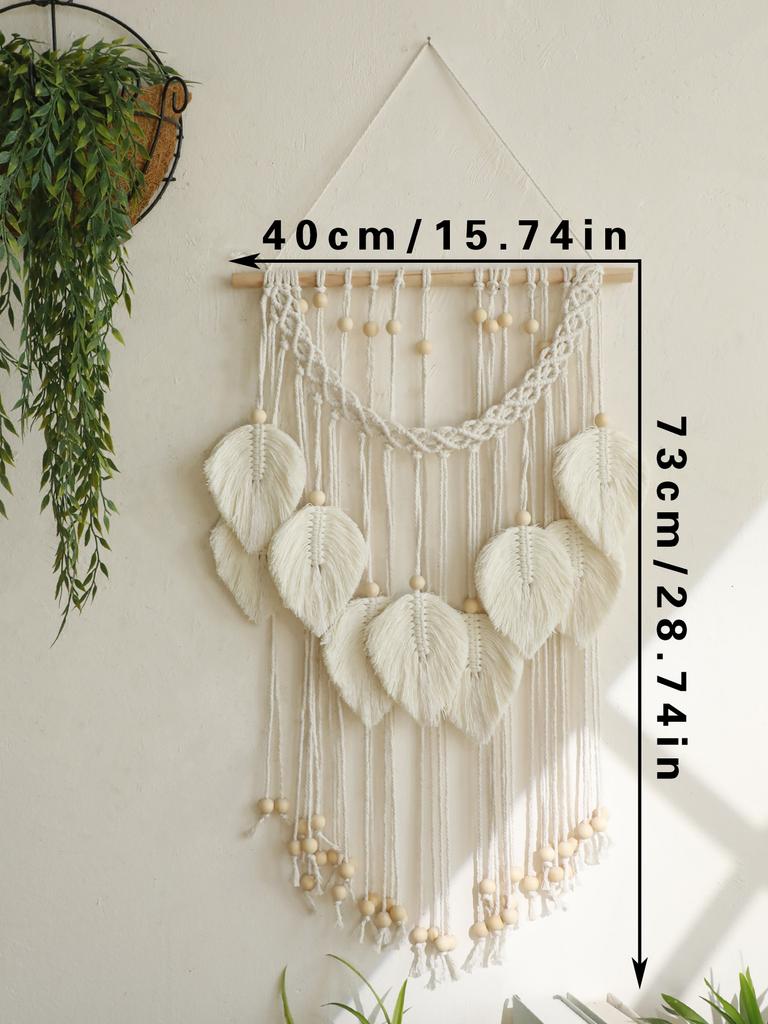 Boho Handwoven Art Tapestry with 9 Leaves and Wooden Beads, Country Wall Decor Tapestry, Nursery, or Dorm Room, Decor Aesthetic