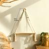 Wood Wall Shelf Macrame Floating Wall Shelf Hanging Shelves Plant Corner Holder Display Stand Room Decor Boho Home Decoration