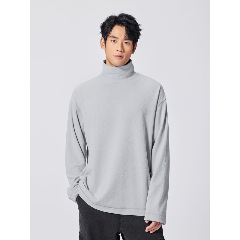 Bodydream Velvet Texture Long-Sleeved T-Shirt for Men, Retro Brushed Casual Top, High-Neck Pullover Base Shirt
