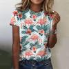 Flamingo Print Women's Round Neck T-shirt 3D Digital Print Elegant T-shirt Women's Top03176 KTB