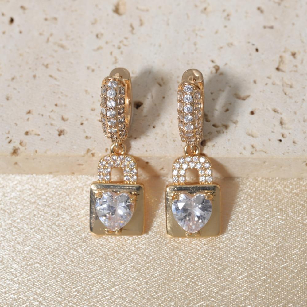 1 Pair Luxury Heart Shape Lock Dangle Earrings for Women Zirconia Earring Jewelry Wedding Party Accessories