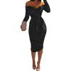 Wearing this dress you will look so sexy and tempting because it has features like off-shoulder, pleated, V neck, lace up and tight waist designs.