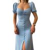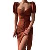 Split hem design can visually make your leg full of attractive. Women low cut square collar dress can greatly show your sexy and full breasts.