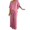 Versatile Styling Options: This versatile 2-piece set can be worn together for a coordinated look or mixed and matched with other wardrobe clothes. Pair the wide-leg pants with a different top or style the bat-sleeve top with tailored trousers for endless outfit possibilities.