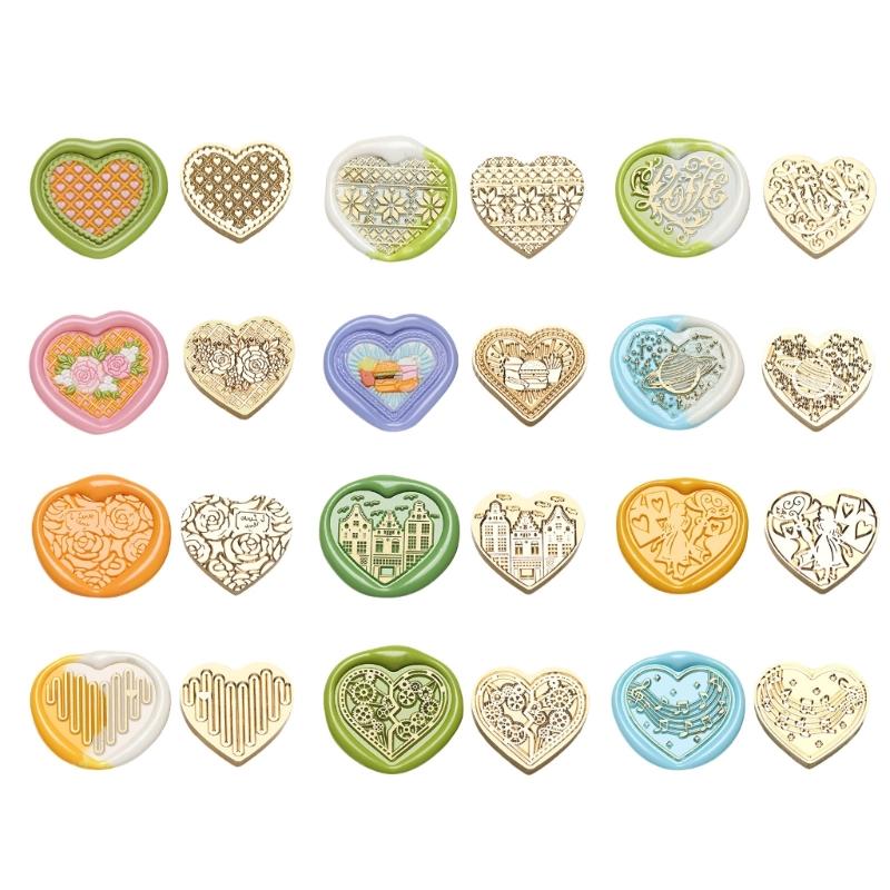 Heart Series Sealing Wax Stamp Head Heart Shaped Wax Seal Stamp for Envelopes Wedding Invitation Decorations Brass