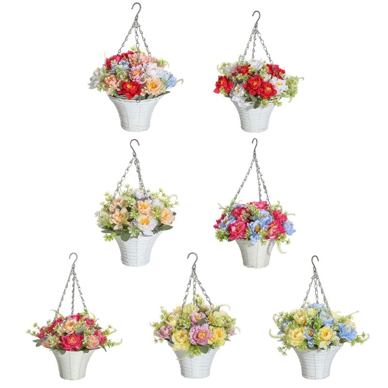 This artificial hanging flower plant in basket great for spring festival, outdoor and indoor decorations, wedding flower arrangement decorations.