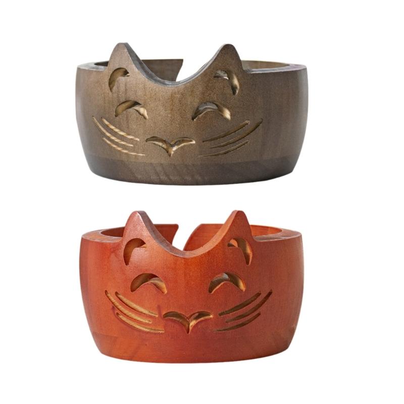 Wood Yarn Storage Bowl Wood Weaving Thread Bowl with Carved Holes Yarn Organiser for Crochet
