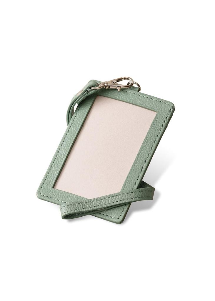 Business Leather Factory Genuine Leather Pass Case with IC Card Holder, Slim Strap, Mint Gray, for Men and Women