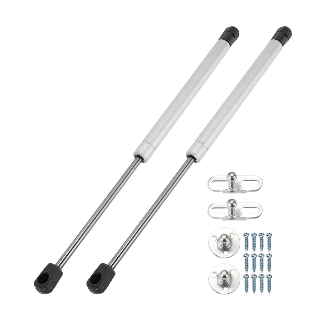 Performance: Extended Length: 15 inches, Compressed Length: 9 inches, Force: 90 lb/400 N/40 kg. The gas spring supports weights between 77 and 104 lbs (340 and 460 N). The lift support struts are made of durable carbon steel, making them strong and durable for supporting heavy covers and items. The gas struts are widely used for car hoods, car rear hatches, RV windows, RV cabinet door covers, storage box covers, and more.
