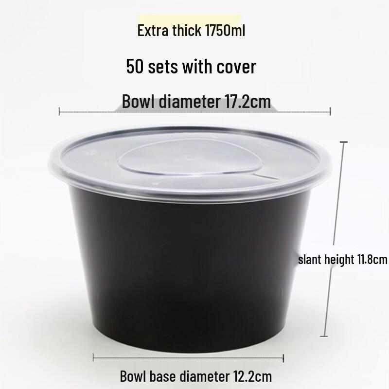 Model1750ml Black Bowl, Clear Lid, 50 Sets
