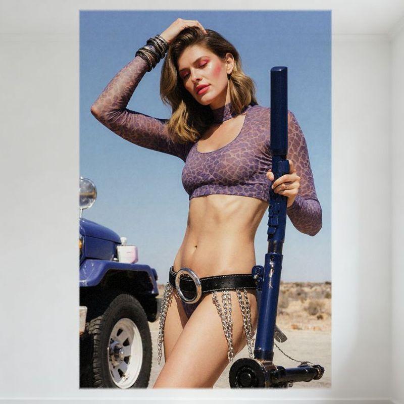 Sexy Desert Woman Purple Leopard Crop Top Blue Vintage Jeep Retro-Futuristic Tin Sign Metal Poster Wall Decor for Bar Pub Home C