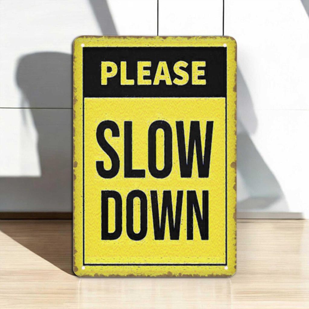 1pc Vintage "Please Slow Down" Aluminum Metal Sign - 8x12 Inch Rustic Wall Decor with Pre-Drilled Holes, High Quality & Weather