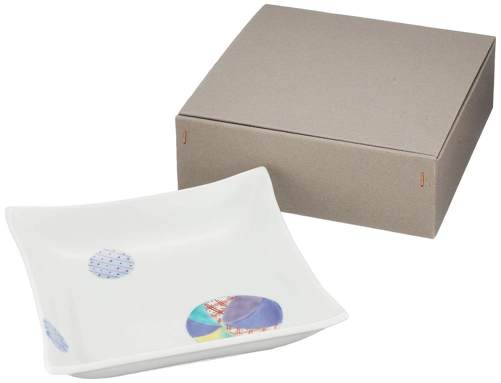 Arita Ware, Shinmine Kiln, Temari Crest, Square, 7-inch Plate, 55019