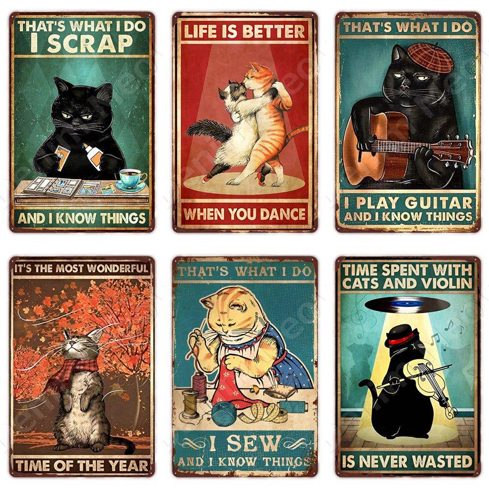 Vintage Metal Sign, That's What I Do I Play Guitar, Dancing Cat, Black Cat, Funny Tin Sign, Rustic Bar, Cafe, Home Decor Gift