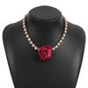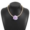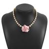 French Retro Fabric Rose Necklace, Romantic Light Luxury Diamond Flower Design Collarbone Chain