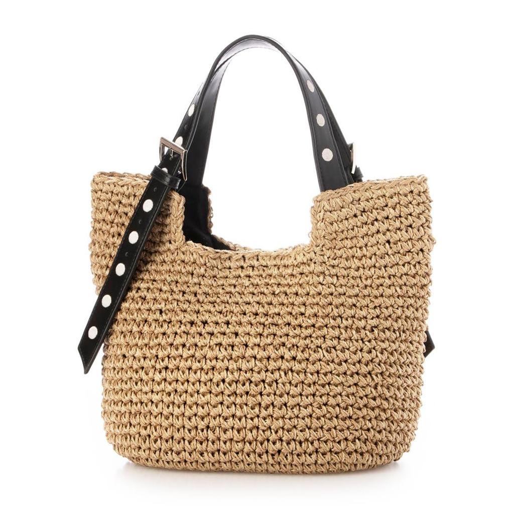 This crochet tote is knitted using paper and slightly lustrous polypropylene yarn.