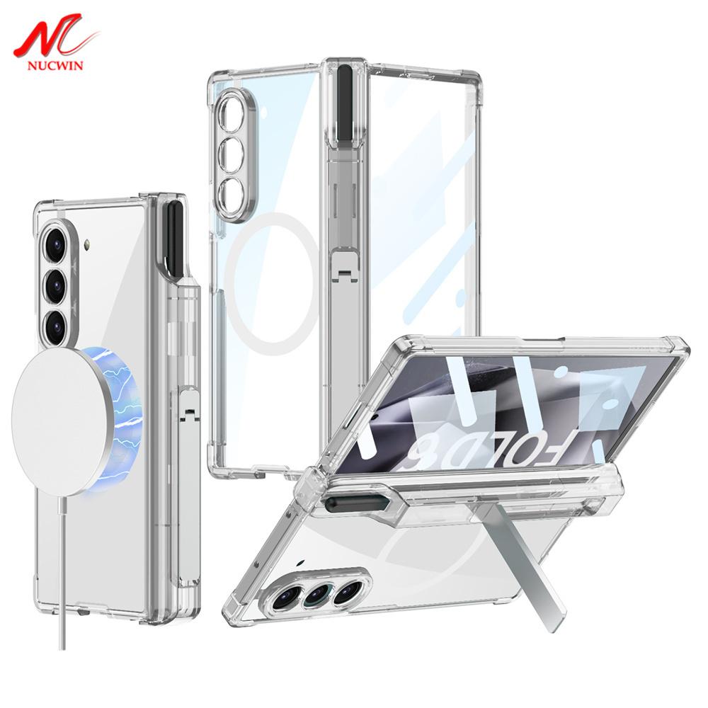 For Samsung Galaxy Z Fold 5 6 7Magsafe Case Transparent Airbag Hinge Protection Screen Protector Z Fold 6 Cover With S Pen Holder No Pen