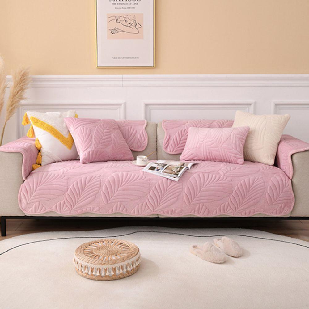 Practical Milk Velvet Leaf Pattern Sofa Cover Non-slip Dirt-resistant Couch Cover Washable Warm Sofa Mat Winter
