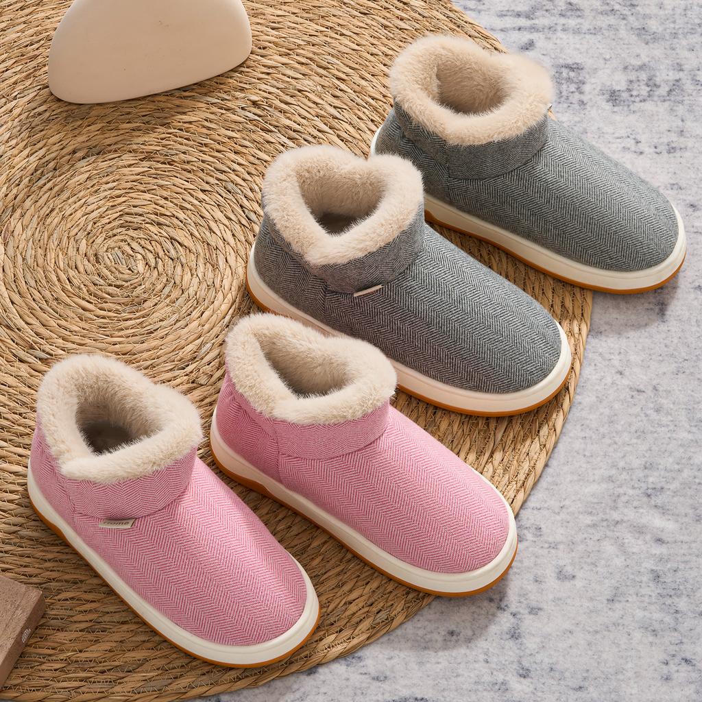 Winter Women Cotton Slippers Plush Warm Thick Bottom Slides Breathable Soft Non-slip Slippers Indoor Outdoor Men Casual Slippers