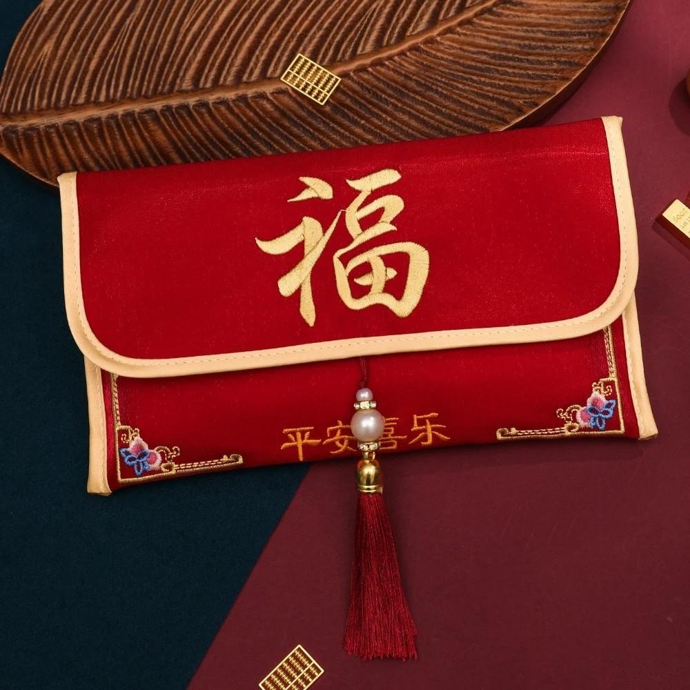 Traditional Chinese New Year Red Envelope Brocade Embroidered Tassel Children's Money Bag Hongbao Thickened