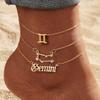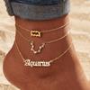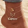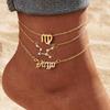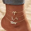 12 Constellation Multilayer Zodiac Anklet Set for Women - Gold Rhinestone High-End Jewelry, 3-Piece