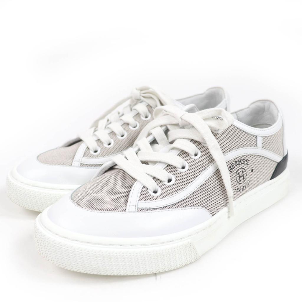 Great HERMES Low Cut Sneakers Get Using Leather White Gray Fabric Women 35 Used