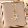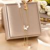 Korean Butterfly Tassel Luxury Diamond Titanium Steel Necklace - Women's Versatile Clavicle Jewelry