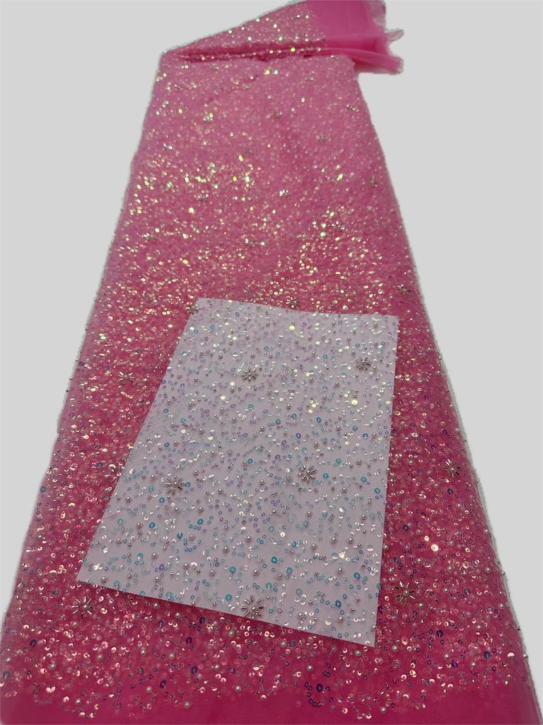 Luxury Pink Nigerian Lace Sequins Fabric 2025 High Quality Lace African Beads Lace Fabrics French For Wedding Party Dress Sewing