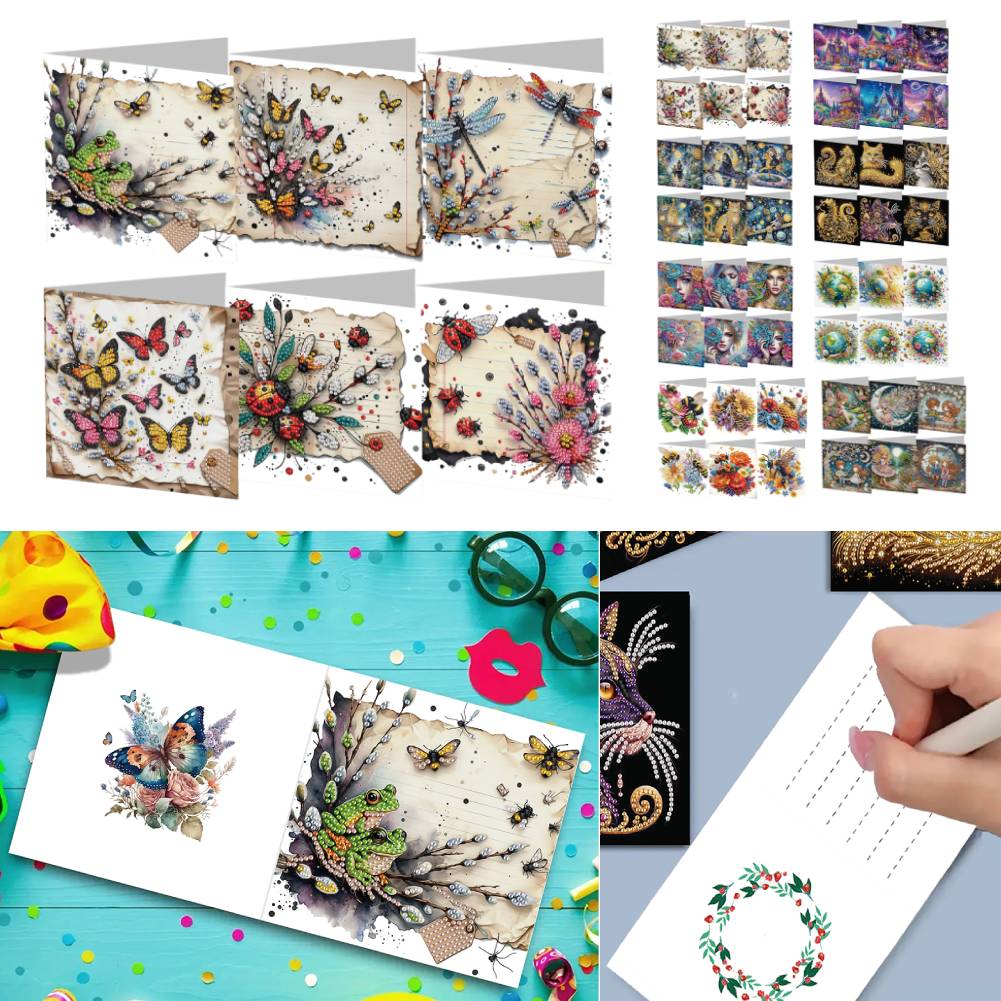 6pcs Diamond Painting Gift Card Handmade 5D Rhinestone Arts Greetings Birthday Card Arts Crafts for Birthday Blessing and Wishes