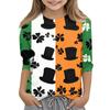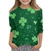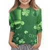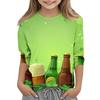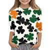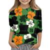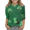 St. Patrick's Day Print Tops For Youth Girls 4-11 Years Round Neck 3/4 Sleeves T-Shirts Trendy Tops Outfit Tees