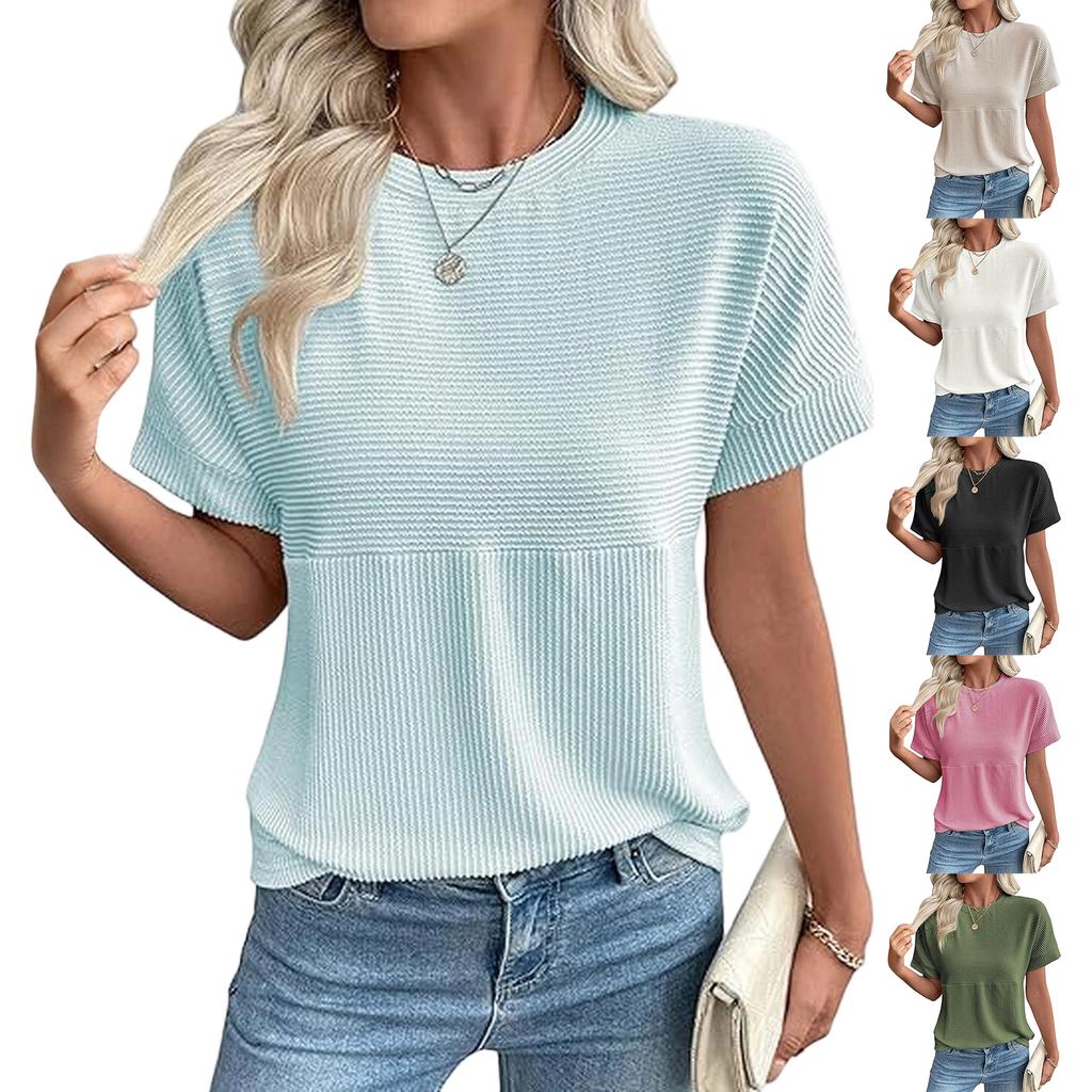 Women's Fashionable Casual Round Neck Ribbed Short-sleeved Top