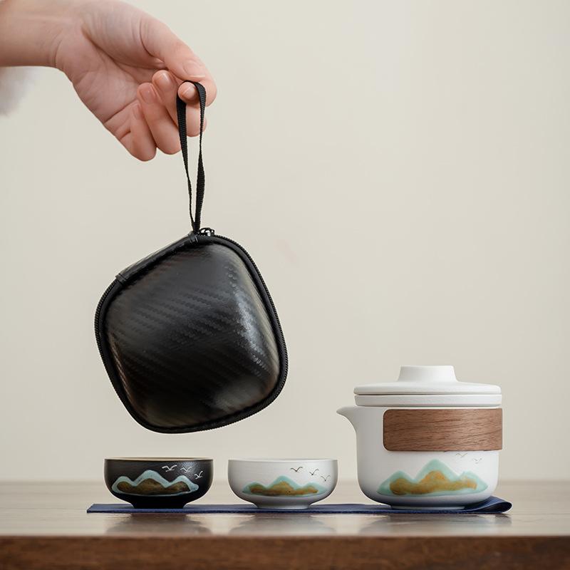 New Chinese Style Aoyama Asuka Outdoor Camping Double Tea Making Equipment Portable Teapot Ceramic Express Cup