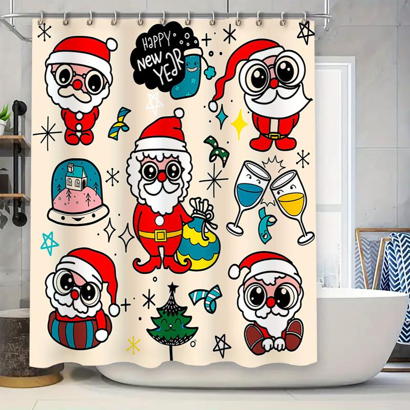 Whimsical Santa Claus Christmas Shower Curtain Set for Home Decor Happy New Year Party Decoration Gifts Idea