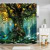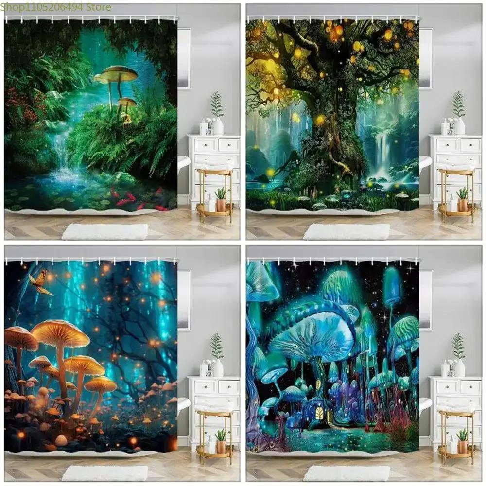 Fantasy Mushroom Shower Curtains Fairy Forest Tree Gothic Panel Jungle Green Zen River Bathroom Decor Shower Curtain With Hook