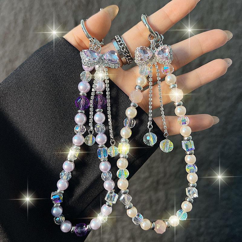 Light Luxury Rhinestone Bowknot Phone Chain Red Phone Strap Tassel Crystal Handheld Chain Versatile Accessory