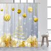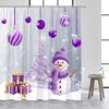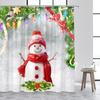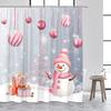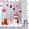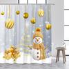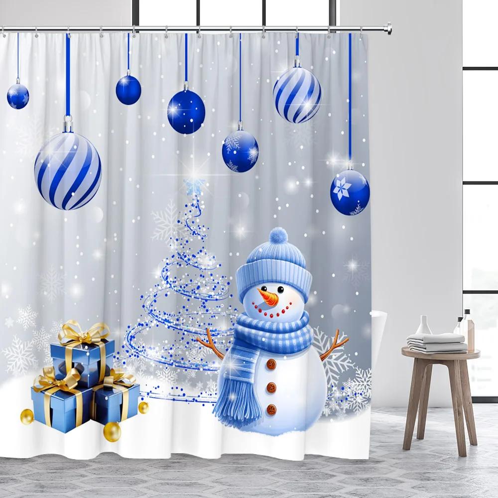 Cute Snowman Christmas Shower Curtains Blue Xmas Tree Rope Ball Gift Snowflake Winter Scenery Fabric Home Bathroom Curtain Dec