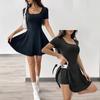 Women‘s Romper Dress with Built-in Shorts - Anti-Slip Belted Waist Short Sleeve Summer Dresses