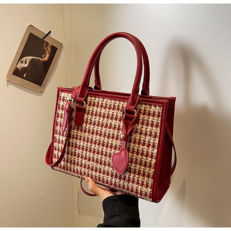 Woolen Large-capacity Commuter Tote Bag Women's Autumn and Winter New High-end Light Luxury Red Bridal Wedding Bag