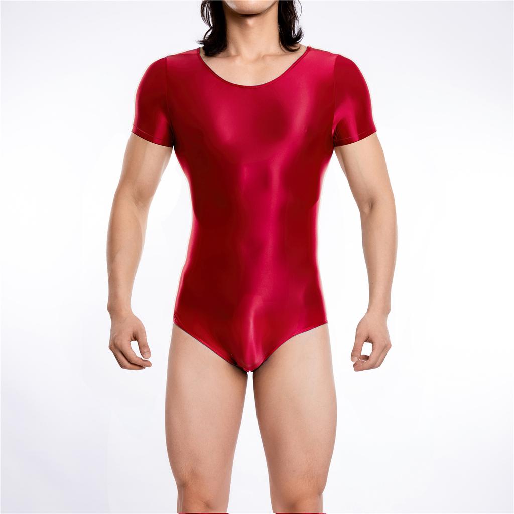 Sexy Men Sheer See Through High Cut Bodysuit Oil Glossy Shiny Maid Tights Stain Yoga Elastic Shaping Leotard Dance Wear