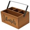 Wooden Tableware Storage Box with Handle and 4 Compartment Portable Silverware Storage Organization Box for Kitchen Counter