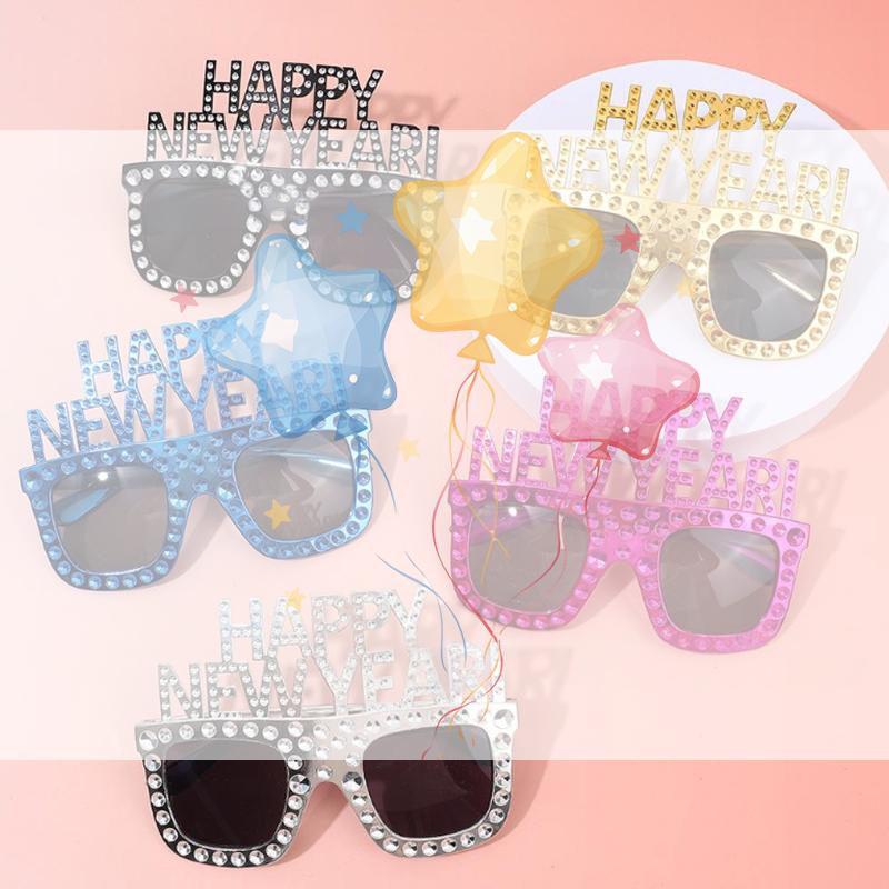 Funky Glasses For Christmas 2026 And New Year's Gifts HAPPY NEW YEAR Decorative Glasses Party Props New Year Party Supplies