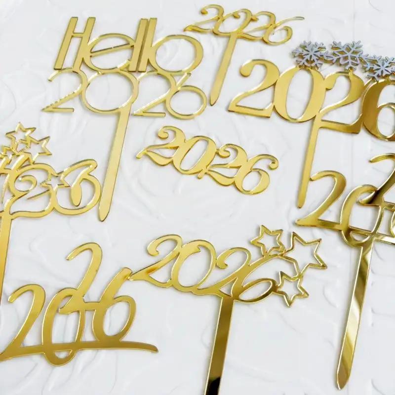 1pc Gold 2026 New Year Cake Topper Xmas Cupcake Topper Christmas New Year Party Cake Decorations