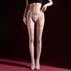 Womens Sexy Stockings With Pearl Thong Oil Shiny Glossy Sockings Open Crotch Pantyhose Transparent Hollow Out Stretch Socks