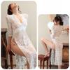 Women Sexy Lingerie Nightdress Lace Open Split Pajamas Dresses Perspective Secretary Uniform See Through Dress Porno Clubwear