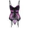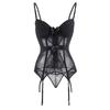 Women Sexy Corset Top With G-String Garter Belt Ultrathin Tight Lingerie Porno Suit Floral Lace Transparent Nightwear Clubwear