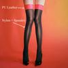 8D Horse Oil Shiny Black Sexy Thigh High Stockings Gothic Punk PU Leather Patchwork Accessories Women Sexy Party Hosiery