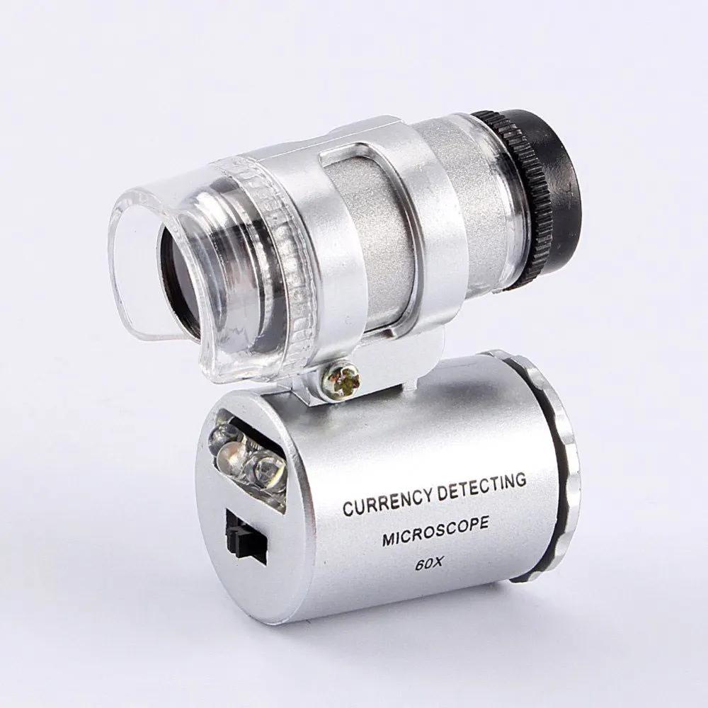LED UV Illuminated 60X Pocket Microscope Mini Portable Jewelry Currency Magnifier Loupe